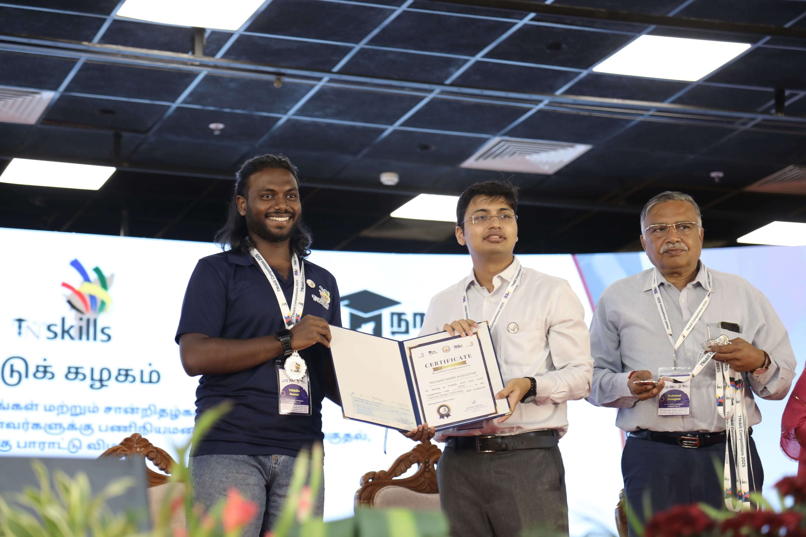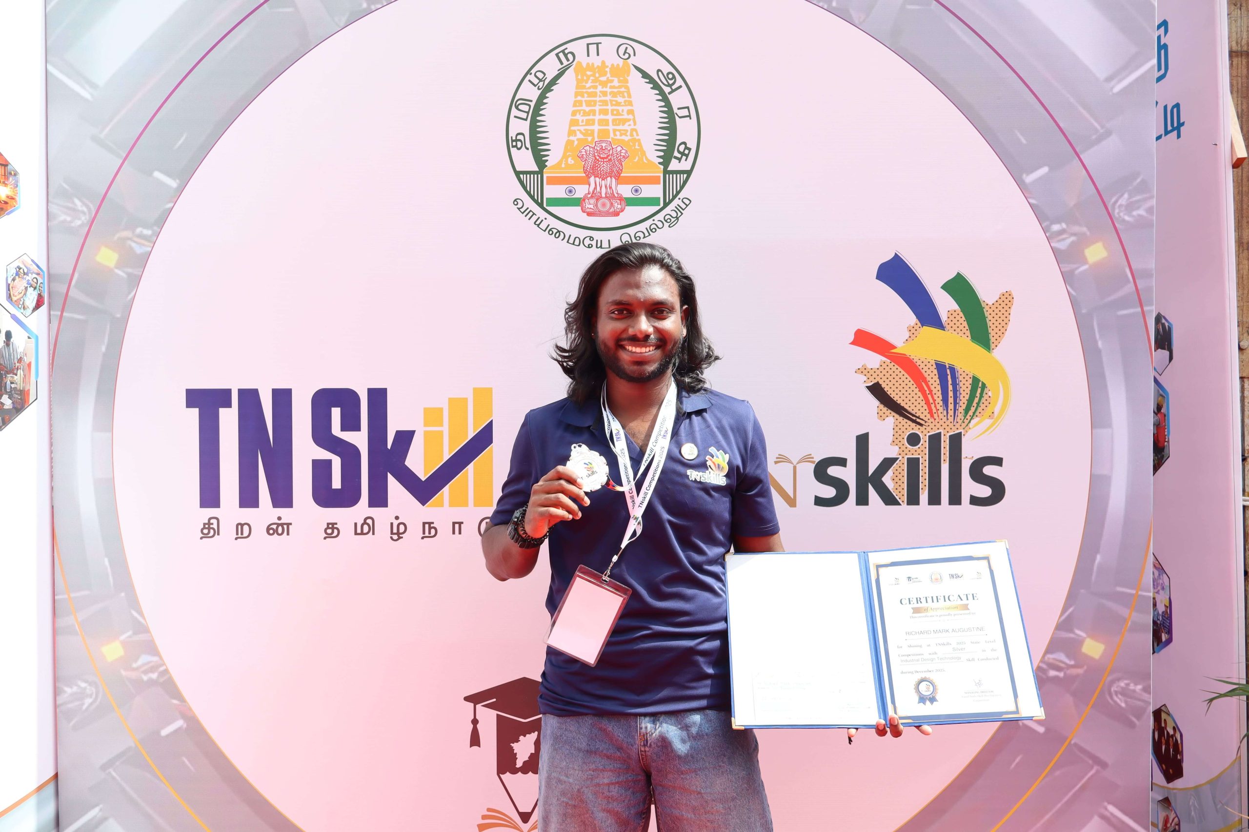 We are delighted to share that Richard Mark, a student of DJ Academy of Design, has been crowned the State Level Champion in Industrial Design Technology at the TN Skills Competition 2026, conducted by Naan Mudhalvan – TNSDC. Richard was felicitated at a ceremony presided over by the Honourable Deputy Chief Minister of Tamil Nadu, marking a significant milestone in his design journey. With this achievement, he will represent Tamil Nadu at the upcoming Regional and India Skills Competition 2026.